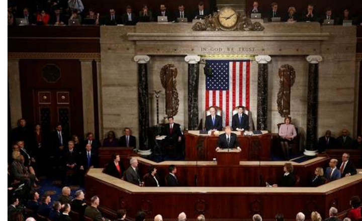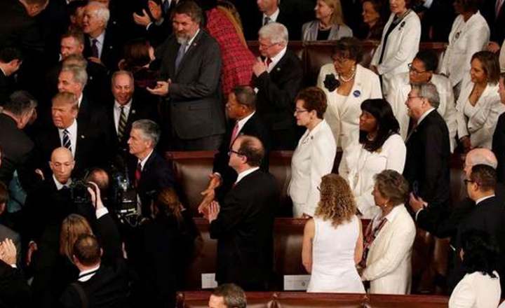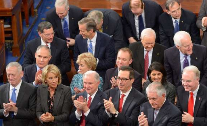 - Los integrantes del gabinete de Trump aplauden al presidente, al iniciar su discurso en el Congreso de Estados Unidos.
