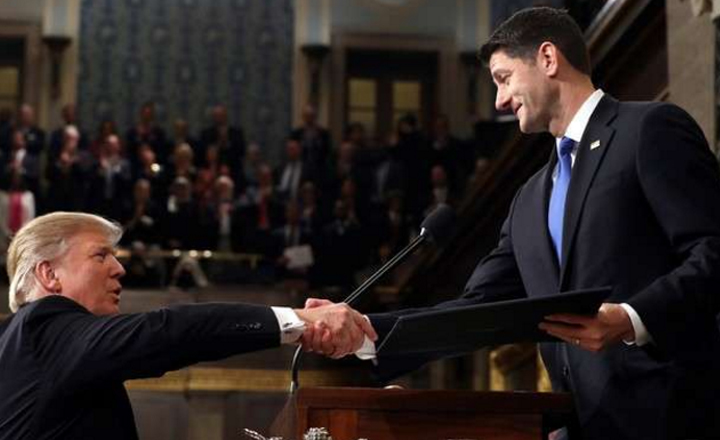 - Donald Trump saluda al presidente de la Cámara de Representantes, Paul Ryan