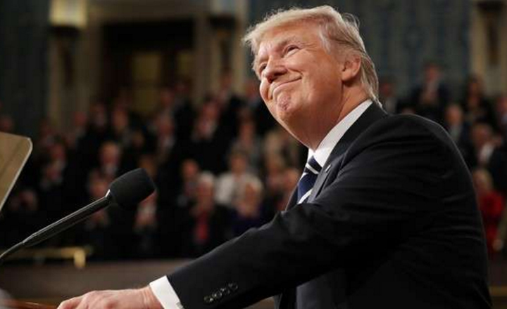 - El presidente Trump sonríe a los militantes que lo aplauden en el Congreso de Estados Unidos.