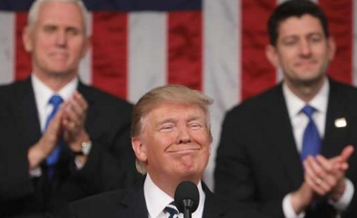 - El vicepresidente Mike Pence y el speaker Paul Ryan aplauden a Trump
