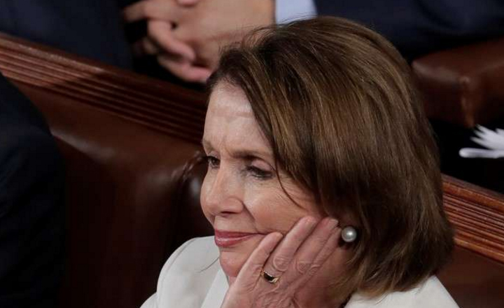 - Nancy Pelosi, la prestigiosa e influyente líder de la minoría Demócrata en la Cámara de Representantes, escucha al presidente Donald