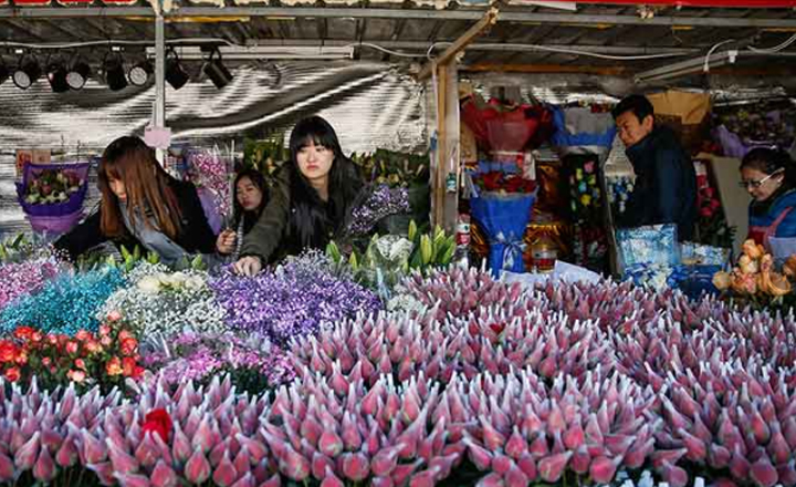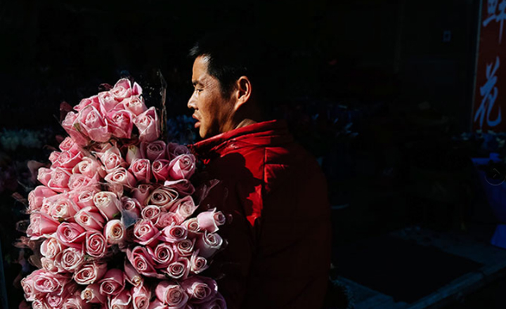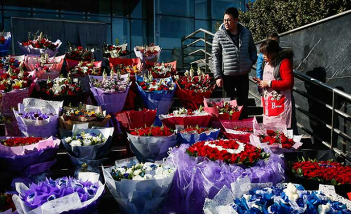 - Un ciudadano chino compra rosas en un mercado en Pekín para el 14 de febrero