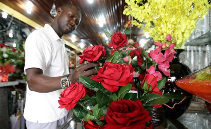 - Hombre en Costa de Marfil a punto de realizar un ramo de flores