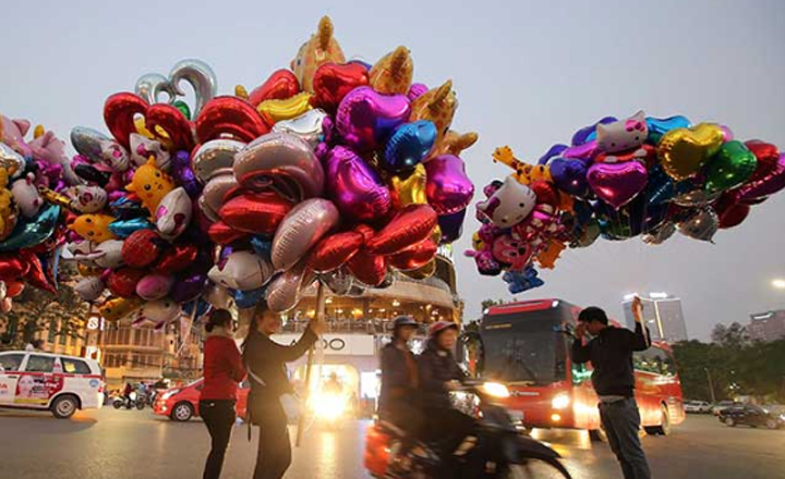 - Vendedores con globos en las calles de Vietnam